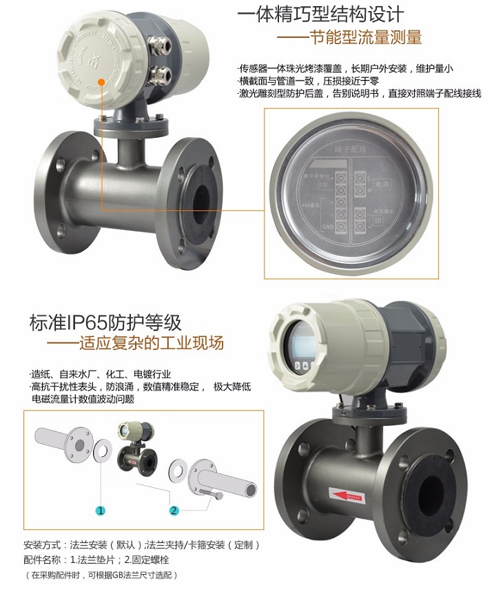 一、安裝分體電磁流量計傳感器的接地:為了使分體式電磁流量計可靠的工作,提高測量精度,不受外界寄生電勢的干擾,傳感器應有良好的單獨接地線,接地電阻<10Ω。在連接傳感器的管道內若涂有絕緣層或是非金屬管道時,傳感器.對外部環境的要求: