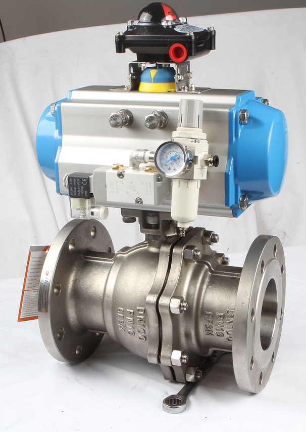 6.安裝好以后,對閥門應(yīng)進(jìn)行試驗(yàn),給氣動(dòng)執(zhí)行器加壓至額定值,壓力為0.4~0.7mpa,對球閥進(jìn)行開關(guān)試驗(yàn),觀察閥門的開閉情況。應(yīng)轉(zhuǎn)動(dòng)靈活無卡阻現(xiàn)象。該開關(guān)如有卡阻現(xiàn)象可增高氣壓,反復(fù)開關(guān)使閥門調(diào)到開關(guān)靈活即可。